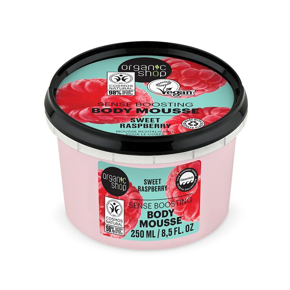 Organic Shop Body Mousse Sweet Raspberry är en mjuk, fluffig kroppsmousse som ger huden en len, återfuktad och silkesmjuk känsla. Den härligt fruktiga hallondoften gör appliceringen till en lyxig stund, samtidigt som moussen absorberas lätt utan att kännas kladdig.
