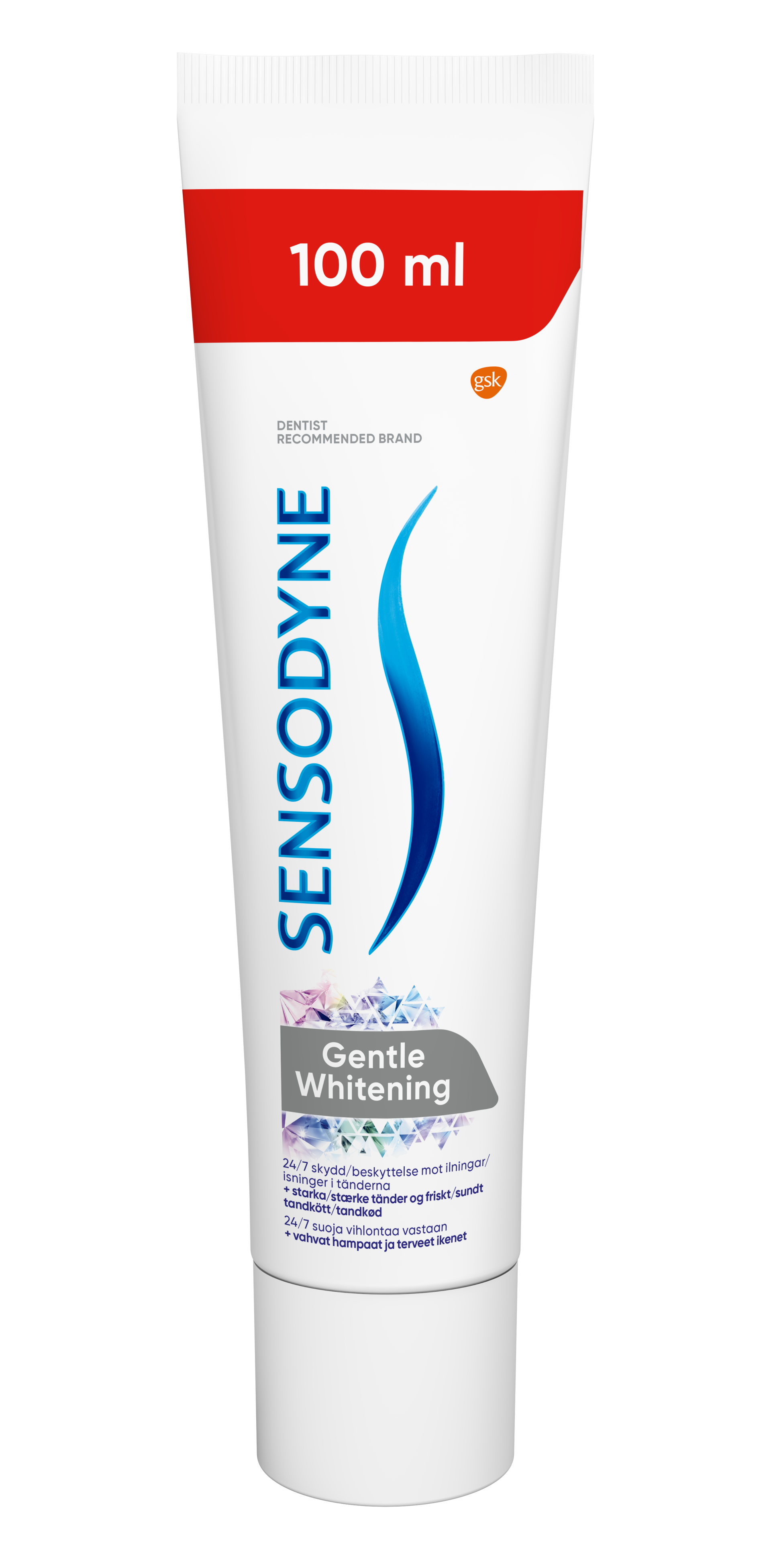 Sensodyne Gentle Whitening är en daglig tandkräm för vitare tänder. Den hjälper till att återfå tändernas naturliga vita färg genom att ta bort fläckar samtidigt som den lindrar mot ilningar. Tandkrämen innehåller dessutom fluor som förebygger och skyddar mot karies vid regelbunden borstning två gånger om dagen. För en frisk andedräkt och ett vitare leende. Vid användning två gånger dagligen minskar känslighet och ilningar redan efter två veckor, och förbättras vid fortsatt användning.
