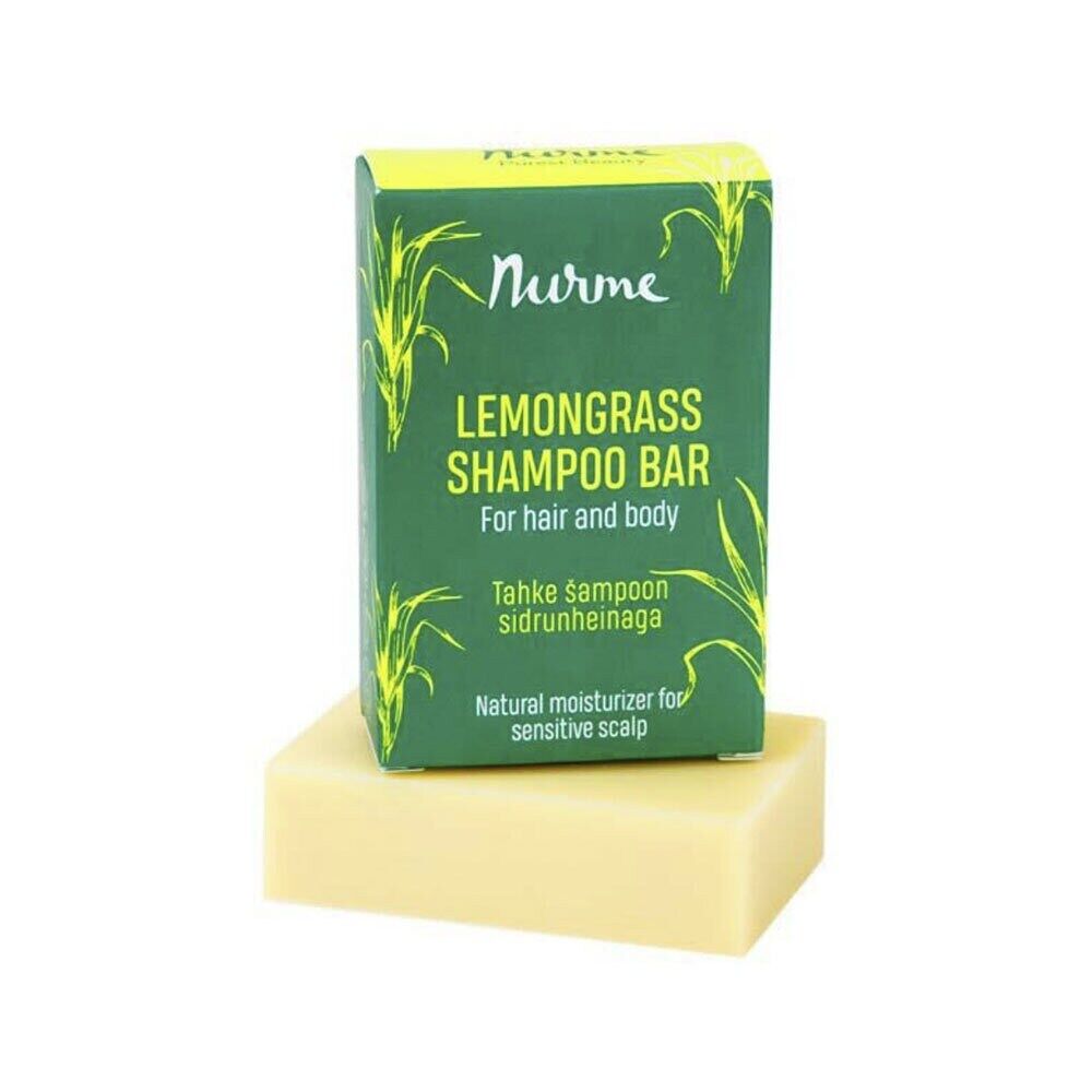 Shampoo Bar Lemongrass från Nurme är ett naturligt schampo i fast form. Den är handgjord och framtagen för alla hårtyper. Den fasta formen gör den plastfri och till ett hållbart alternativ till flytande schampo.