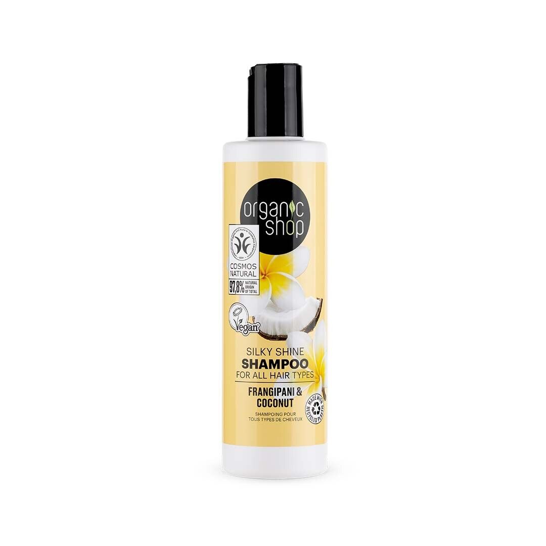 Organic Shop Silky Shine Shampoo Frangipani & Coconut är ett milt och vårdande schampo som passar alla hårtyper. Kombinationen av frangipani, känt för sin glansgivande effekt, och näringsrik kokos skapar en formula som stärker hårets vitalitet och ger en naturligt strålande finish.