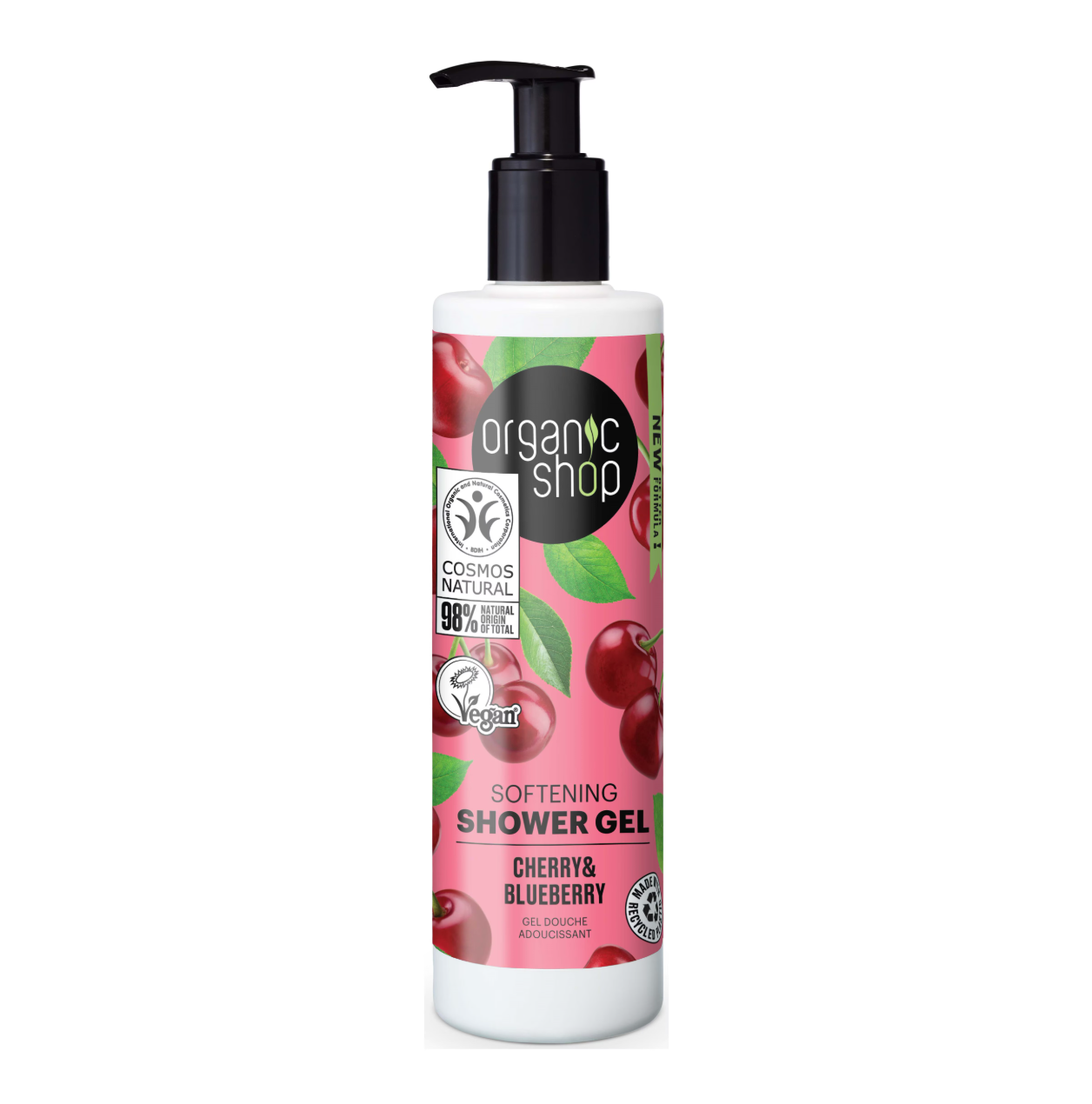 Organic Shop Softening Shower Gel Cherry & Blueberry är en vegansk, mjukgörande duschgel som ger huden en len och återfuktad känsla samtidigt som den bjuder på en söt och fruktig doft av körsbär. Med ekologiskt extrakt från körsbär och blåbär rengör den huden milt och fyller den med vitaminer och antioxidanter som stödjer hudens naturliga balans.