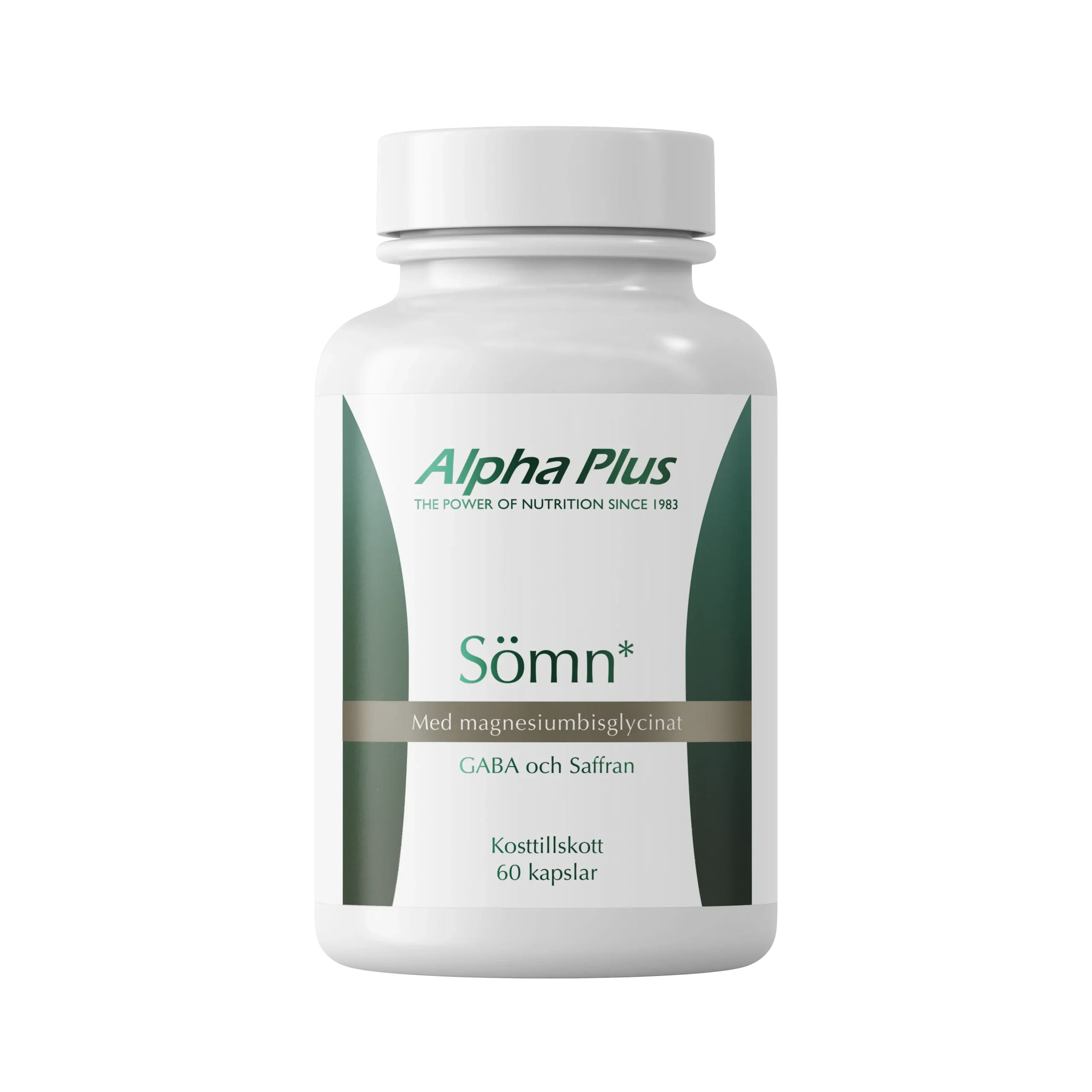 Alpha Plus Sömn är ett noggrant sammansatt kosttillskott som innehåller ett komplex av näringsämnen och växtextrakt som stödjer kroppens naturliga förmåga till avslappning och vila. Formulan kombinerar magnesiumbisglycinat, GABA, inositol, citronmeliss, saffransextrakt (affron®) och vitamin B6 – ämnen som tillsammans bidrar till ett lugnt sinne och en god natts sömn.