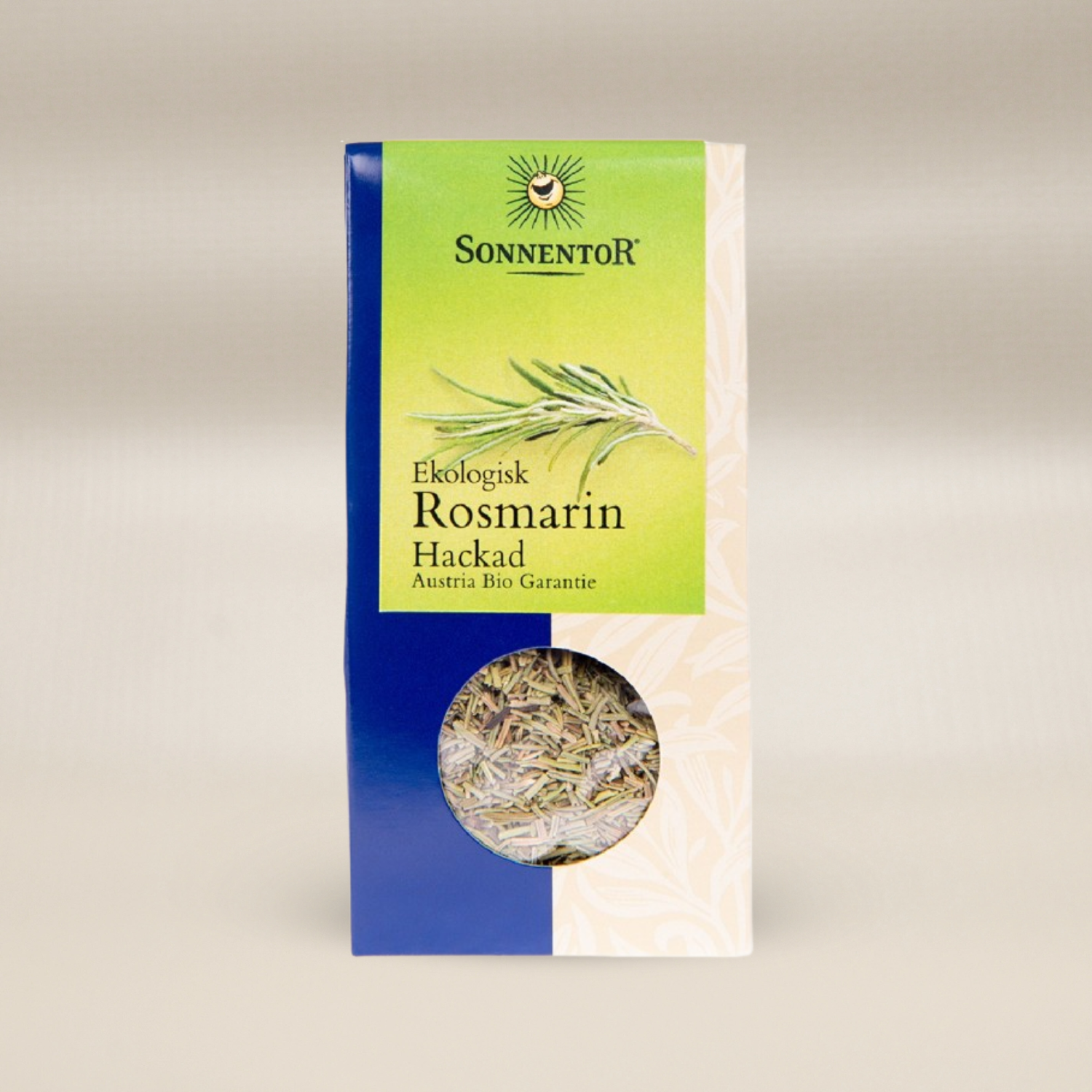 Sonnentors ekologiska rosmarin har en kraftfull, träig och något kådliknande smak som är typisk för medelhavsköket. Den passar utmärkt till ugnsrostade grönsaker, potatisrätter, lamm, kyckling och i brödbakning.