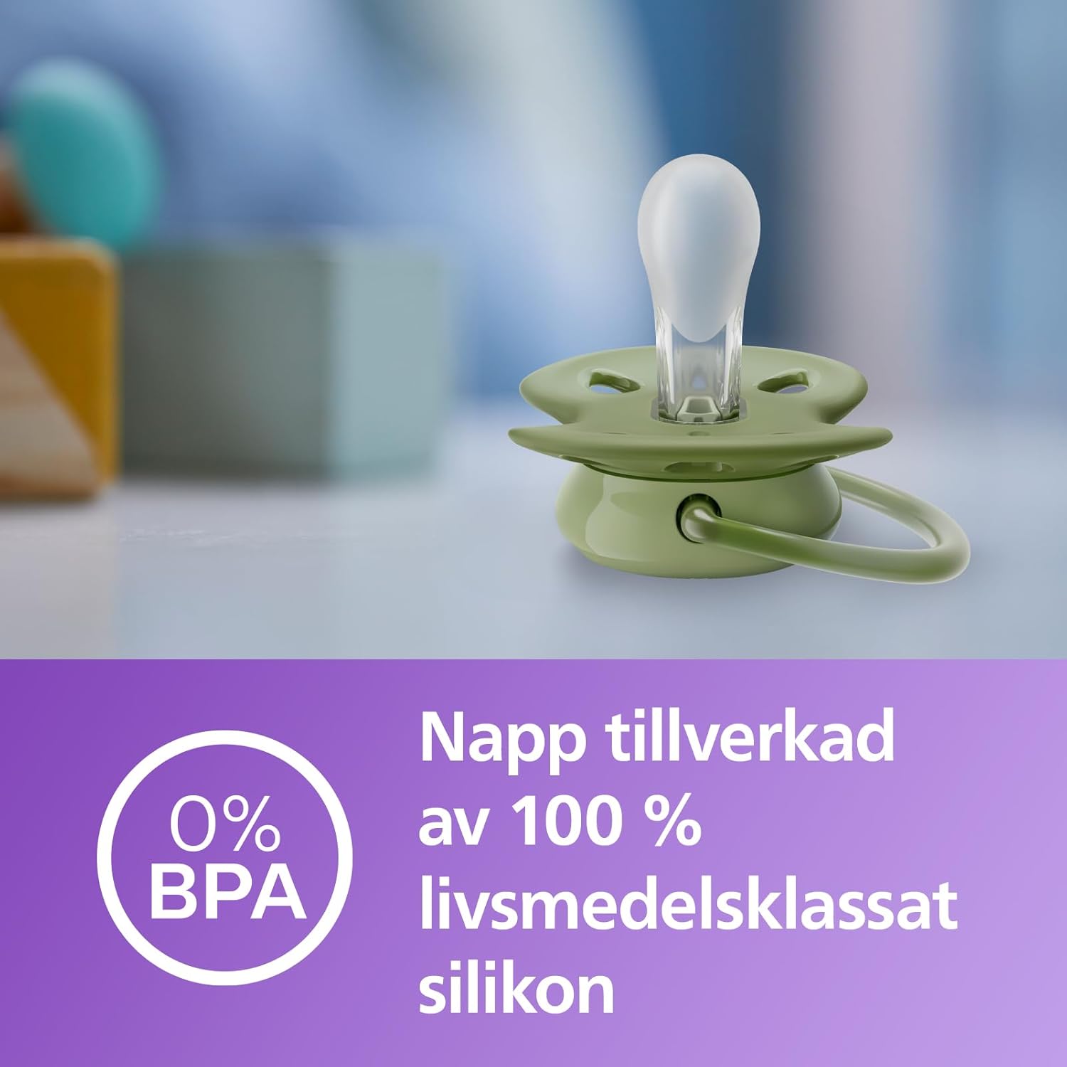 Nappens lena textur av silikon lugnar och tröstar barnet.