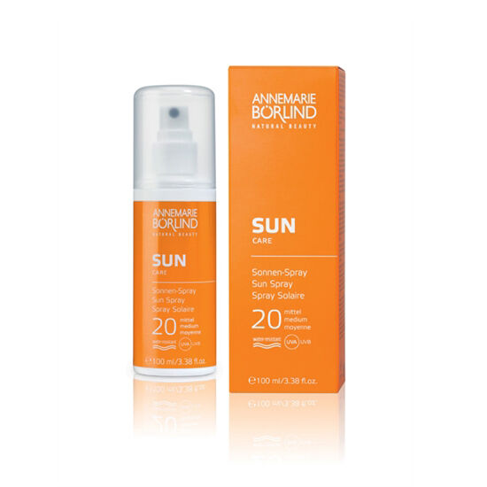 Börlind Sun Spray SPF 20 är en fuktgivande solskyddsspray som ger ett effektivt skydd mot solens UVA- och UVB-strålar, enligt EUs krav på solfilter, samtidigt som den verkar vårdande på huden. E-vitamin och vitamin B5 bidrar till att motverka för tidigt åldrande på grund av solens inverkan. Sun Spray SPF 20 innehåller även extrakt från en brunalg som vuxit vid havsytan och därmed ständigt utsatts för UV-ljus. Algen har därför utvecklat en mekanism för att skydda cellernas DNA från solens skadliga UV-strålar. Sprayen är vattenresistent.
