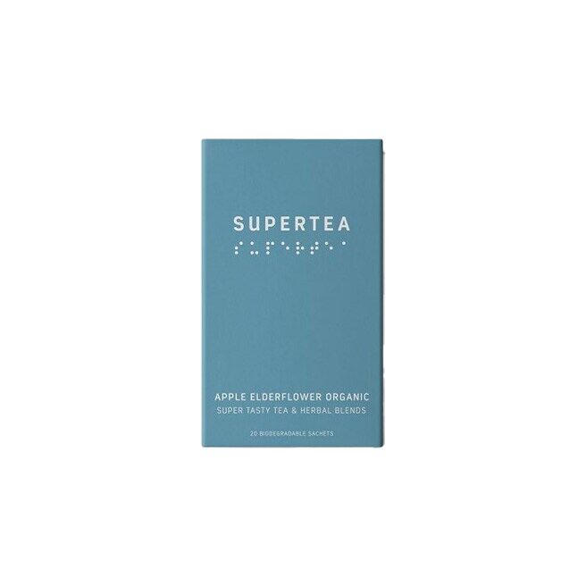 Supertea Apple Elderflower Organic 20 påsar är ett uppfriskande te blandat med ekologiskt grönt te, citrongräs & lakritsrot.