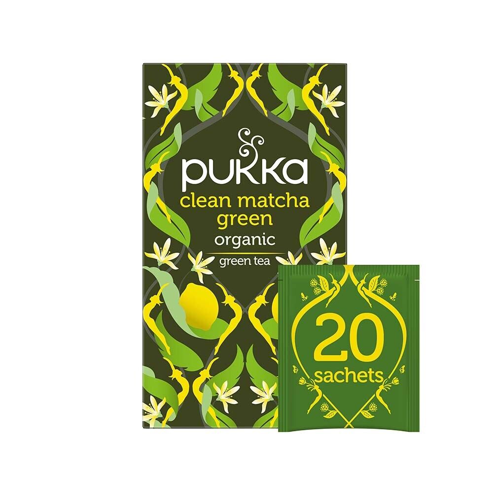 Te Clean Matcha Green 20 påsar från Pukka är ett matchate med bl.a. fänkål, laktits och nässla.