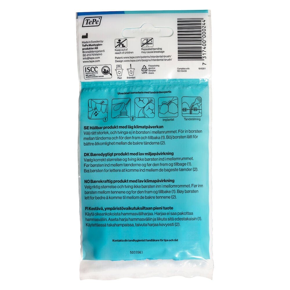 TePe Mellanrumsborste Original finns i 9 färgkodade storlekar för att passa mindre till större mellanrum - ISO borststorlek 0-8. Mellanrumsborstarna är utvecklade i samarbete med tandvårdsexpertis för att säkerställa bästa funktion, känsla och kvalitet på detaljnivå. Daglig användning avlägsnar upp till 40% mer plack än endast tandborstning. Effektiv plackborttagning motverkar tandköttsinflammation, karies och dålig andedräkt.