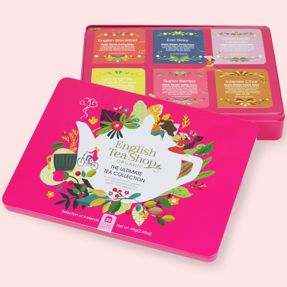 Ekologiskt te i 6 handplockade smaker! Starta dagen med en god kopp te! I denna fina telåda från English Tea Shop kan du välja bland 36 st välsmakande, ekologiska tepåsar med svart te, grönt te, örtte, rooibos-te och chai te. Här hittar du de klassiska teerna English Breakfast och Earl Grey, grönt te med citrongräs, citrus och ingefära, kamomillte med lavendel, rooibos te med superbär och kryddig chai te. En tepåse för varje fikastund och humör!