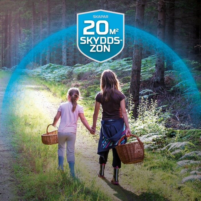 Förpackingen innehåller gaspatroner med mattor med ett myggskyddsmedel. När apparaten värmer upp mattorna skapas en skyddszon på 20m2.