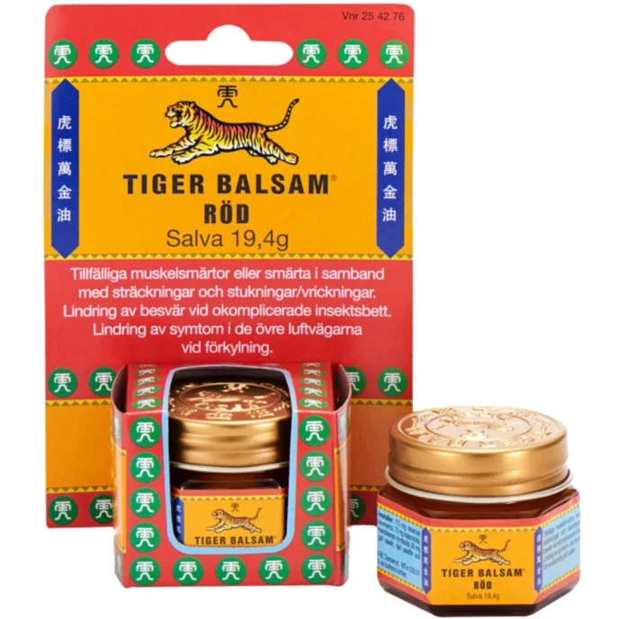 Sammansättningen av Tiger Balsam Röd baseras på en formulering som använts i Asien under cirka 5000 år. Effekten av de enskilda beståndsdelarna finns dokumenterad i läkemedelshandböcker från början av 1900-talet.