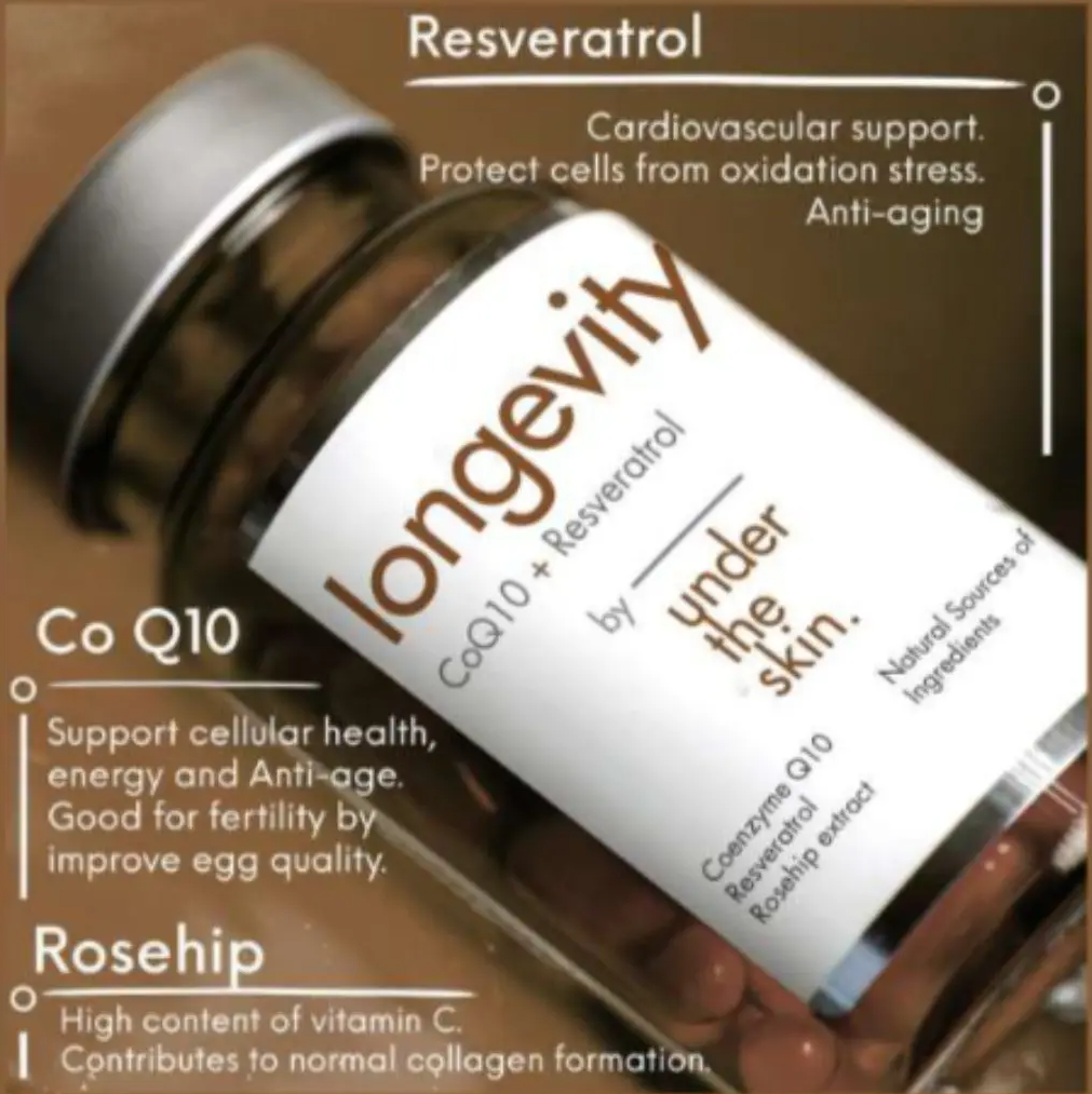 Longevity med Q10, resveratrol och nypon är en kombination för ökad energi, bättre hjärthälsa och skydd mot fria radikaler. Resveratrol stödjer cellernas naturliga åldrande och bidrar till en frisk, ungdomlig hud, medan Q10 ger energi till dina celler och hjälper dig att hålla energinivån på topp. Nyponextrakt med högt innehålls av vitamin C främjar kollagenbildning.