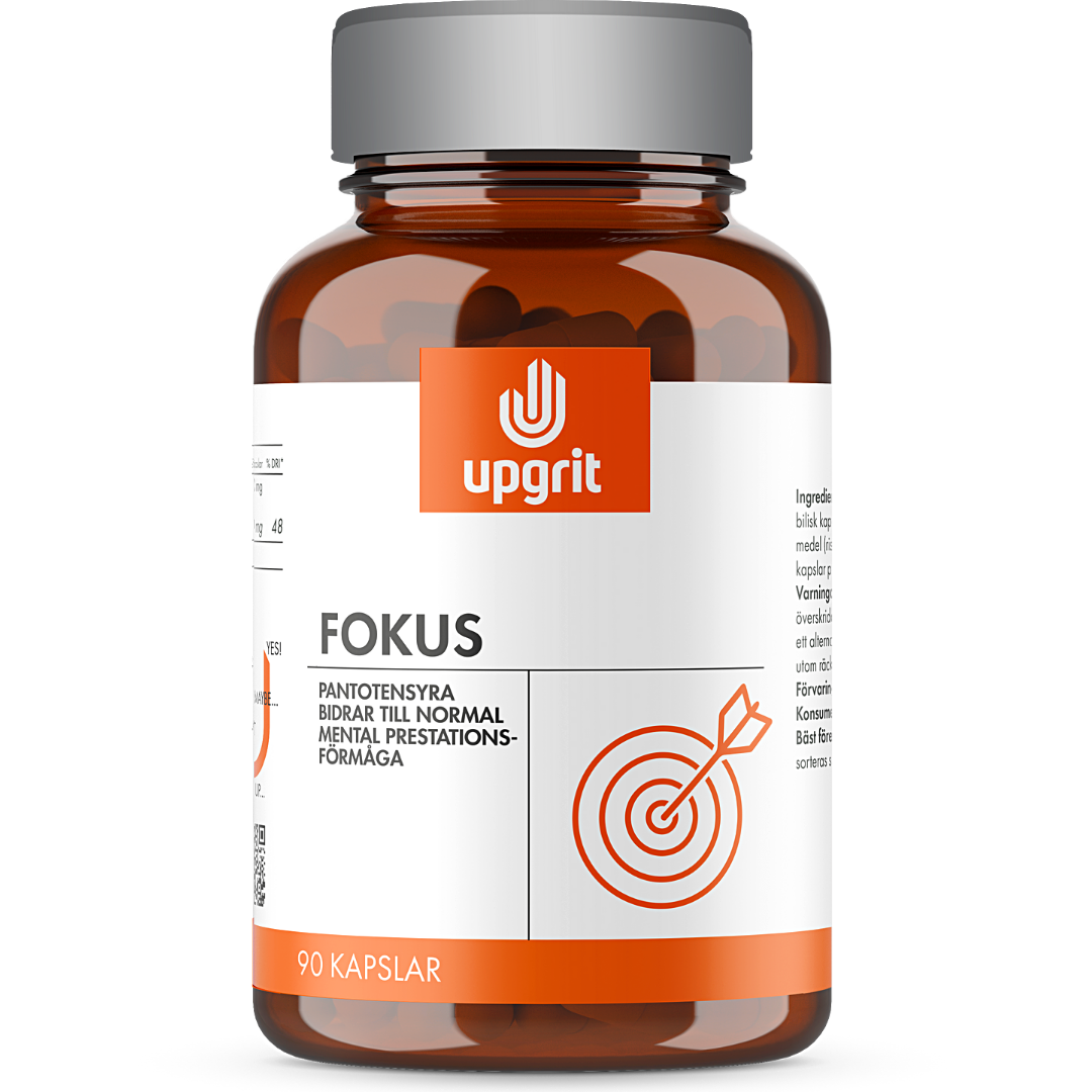 Fokus är ett kosttillskott med Acetyl-L-Karnitin, Pantotensyra, L-Teanin och Q10. Upgrits produktexperter har valt ut ingredienser av hög kvalitet och i rätt mängd.