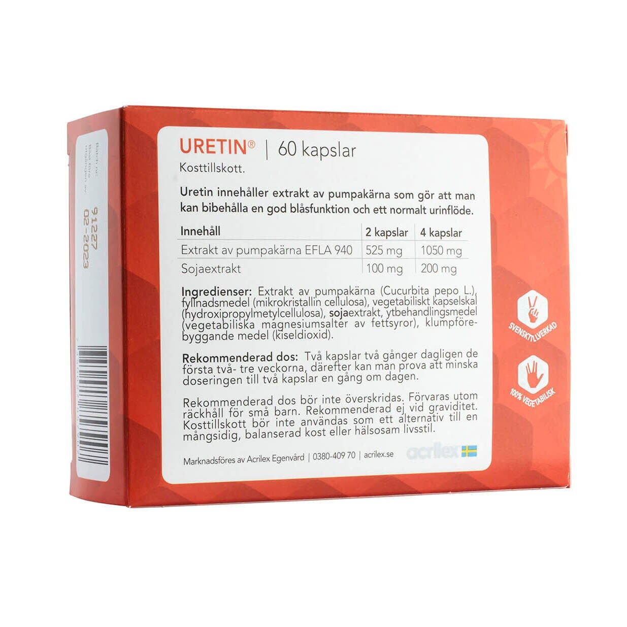 Uretin från Acrilex innehåller ett speciellt pumpaextrakt, EFLA-940 som är behandlat på ett sånt sätt att de fettlösliga delarna tagits bort, vilket är unikt och görs enligt en patenterad process. Man kan därför inte jämföra EFLA 940 med andra pumpaextrakt, eller med att äta pumpakärnor.