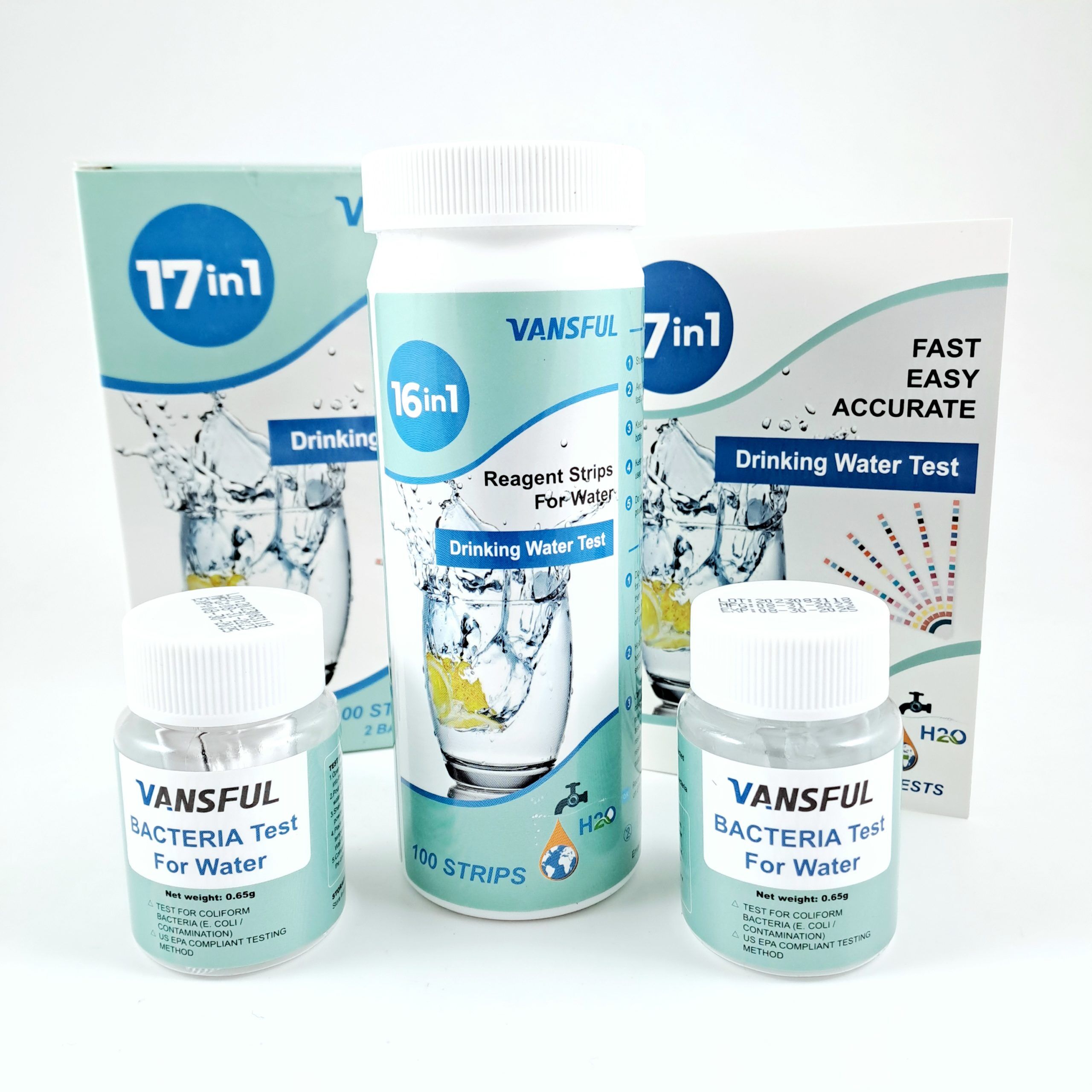17 parameters test för vatten med 100st test-strips och 2st bakterietester.