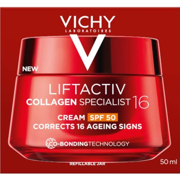 Vichy Liftactiv Collagen Specialist 16 Day Cream SPF 50 är en innovativ anti-age-dagkräm som är särskilt utvecklad för att motverka ålderstecken och återställa hudens ungdomliga spänst. Genom att fokusera på hudens kollagenproduktion hjälper denna kräm till att reducera synligheten av rynkor och fina linjer samtidigt som ansiktets konturer blir mer definierade. Redan efter första appliceringen upplevs huden fastare och mer återfuktad.