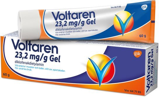 Voltaren gel 23,2 mg/g är ett receptfritt läkemedel som innehåller den aktiva substansen diklofenak. Gelen tillhör gruppen NSAID (icke-steroida antiinflammatoriska medel) och är särskilt framtagen för att ge en lokal, riktad effekt direkt på smärtområdet. Den används vid mild till måttlig smärta i samband med muskel- och ledskador, såsom sportskador, stukningar eller värk i knän och höfter.