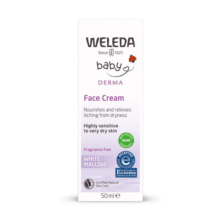 White Mallow Face Cream är extra snäll mot en irriterad och mycket känslig bebishud. Innehåller lugnande extrakt av malva och näringsrika oljor från kokos och sötmandel. Den ger huden ett naturligt skydd och är parfymfri.
