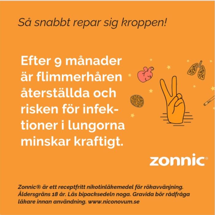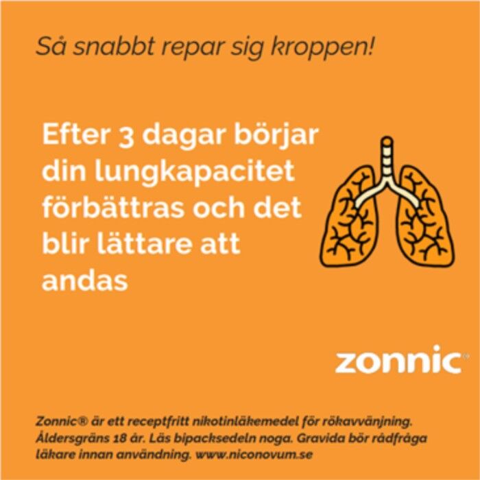 När du plötsligt slutar tillföra kroppen nikotin via tobak drabbas du av olika former av obehag, s.k. abstinensbesvär. Med hjälp av Zonnic Mint kan du förhindra eller åtminstone minska dessa obehag genom att du fortsätter tillföra kroppen en liten mängd nikotin under en övergångsperiod. Råd och stöd ökar normalt chansen att lyckas.