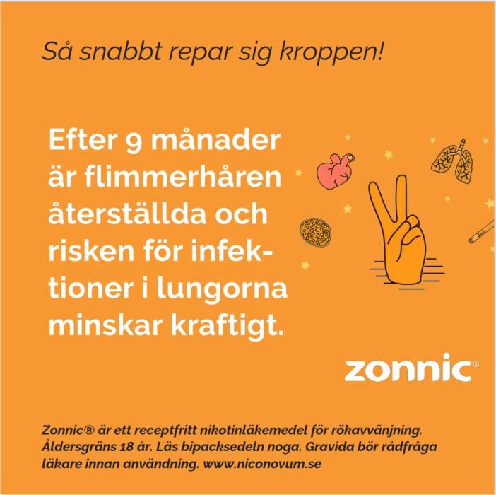 När du plötsligt slutar tillföra kroppen nikotin via tobak drabbas du av olika former av obehag, s.k. abstinensbesvär. Med hjälp av Zonnic Mint kan du förhindra eller åtminstone minska dessa obehag genom att du fortsätter tillföra kroppen en liten mängd nikotin under en övergångsperiod. Råd och stöd ökar normalt chansen att lyckas.